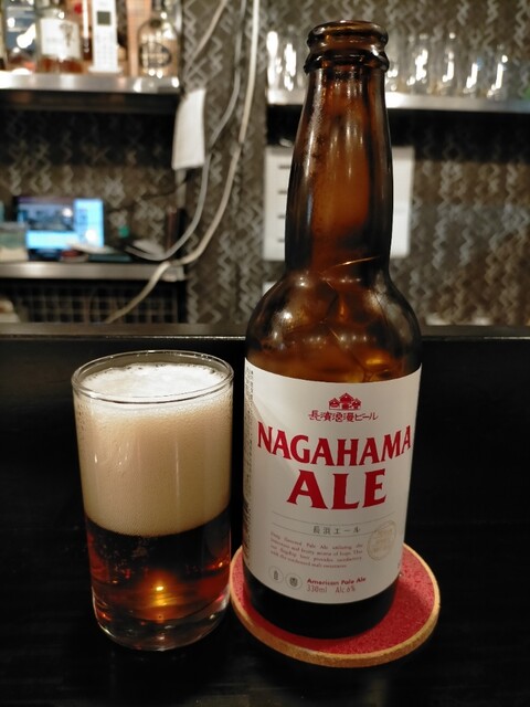 滋賀県に来たら長濱浪漫ビールを飲まなきゃ。大津市の近江麦酒飲まなきゃ。クラフトビアバーを検索したら1件あった。ビール好きの私は1人でも行こうと思っていたが居酒屋で食事をした後に同僚も同行してくれた。駅前付近ではあるがお店が少ない。地図を辿りお店に到着し、カウンター席に案内された。タップマルシェがあったのでちょっとがっかり。このビールは東京でも飲める。ボトルビールがあった。おっ!長濱浪漫ビールが4種...