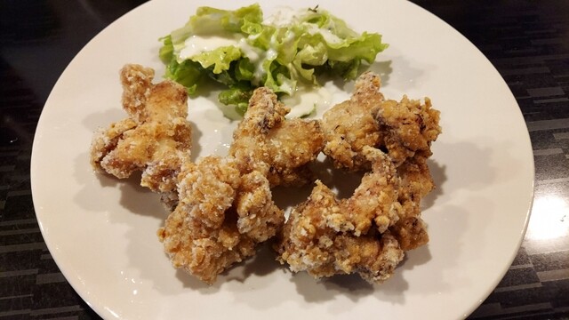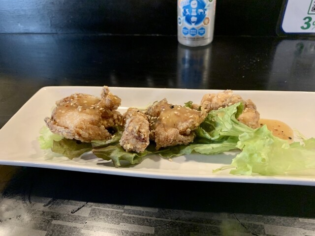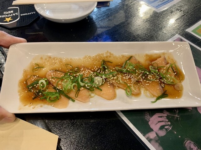 会社の人たちとこちらへ。タバコが吸えるという理由でここになったそう。店内はこぢんまりしています。奥のテーブル席はほぼトイレの前、手前は入口のそばという配置。この店は団体よりカウンターでのスタイルがいい...