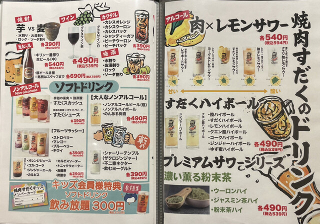 | ドリンク | 焼酎あり、カクテルあり、焼酎にこだわる、カクテルにこだわる |