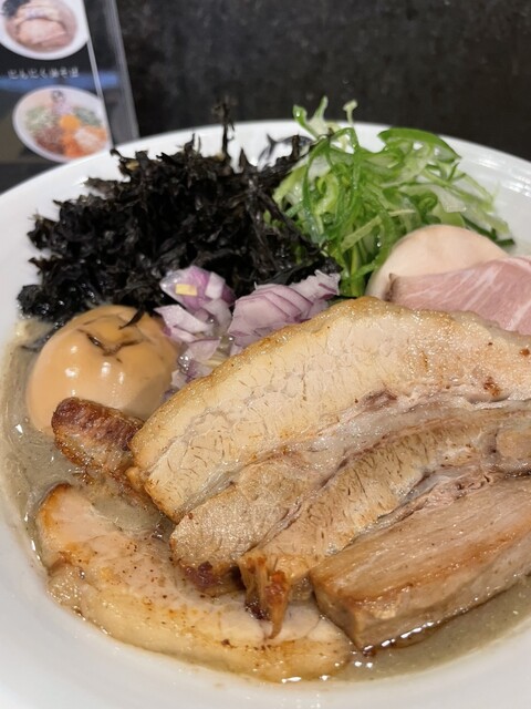 今回も麺が見えない程の具沢山で2種の豚チャーシ...