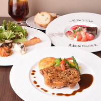 全5品のコース。 メイン料理はお肉料理かお魚料理から選んでいただきます。 その日の食材により内容は変わります。 17時以降提供可能。