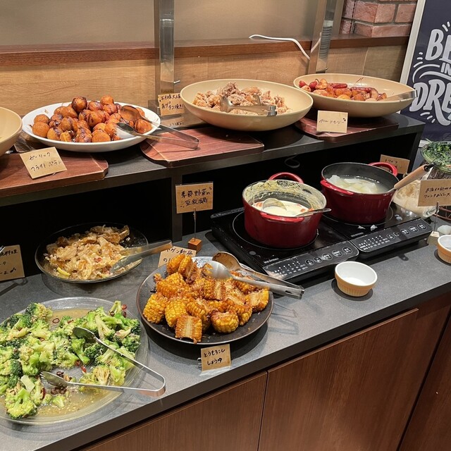 こちらのお店はメインを選ぶとパン、スープ、サラダ、創作料理、デザート、ソフトドリンクのビュッフェが食べ放題になる(単品オーダーも可能)。