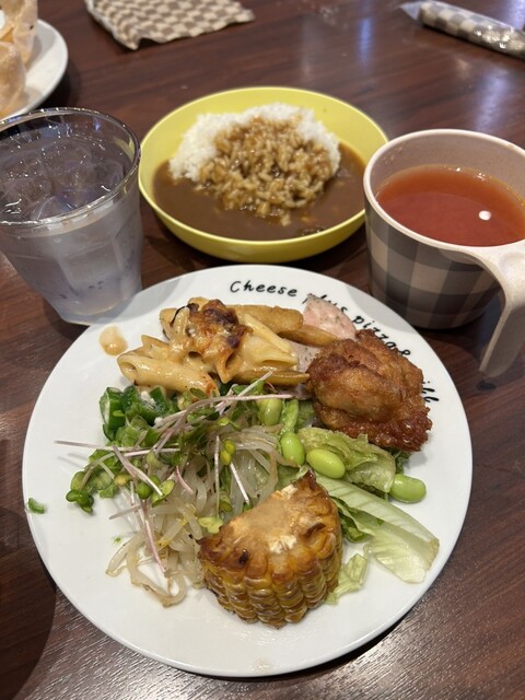 お好みのメイン料理とチーズプラスのシェフが創り出す創作料理にこだわりの自家製パン、ソフトドリンクが食べ放題のビュッフェを付けることができる!
