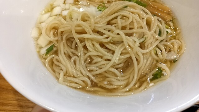 スープは塩らしいあっさり加減ですが、上品な甘さと鶏の旨味もし...