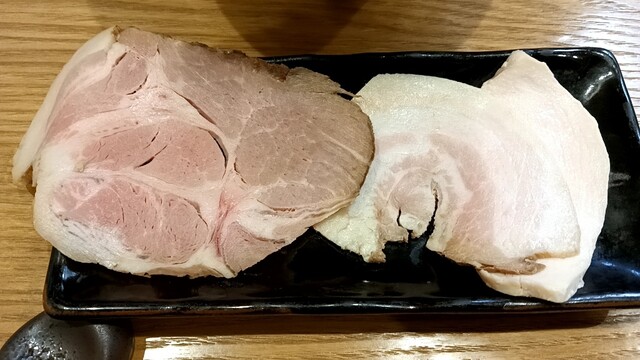 やって来たのは澄んだスープがキレイな一杯で別皿での提供のチャーシューの色どりも美しい。