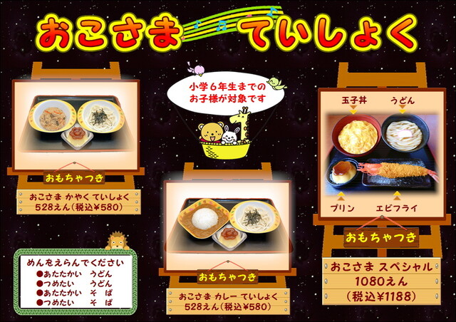 子供可(乳児可、未就学児可、小学生可)、お子様メニューあり 小さいお子様がおられるご家族の方にも安心してお食事して頂けるよう、赤ちゃん用のクーハン・バウンサー・バンボ、キッズ用のローチェアーといろいろご用意しております。 |