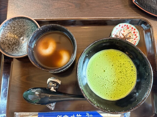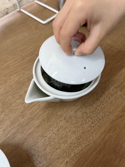 空いてる席に座ると 直ぐお店の方が朝宮茶を持ってきて下さいました。