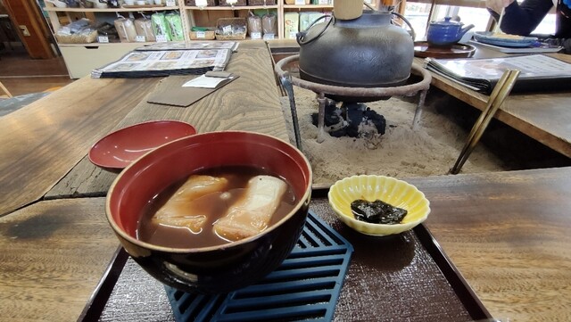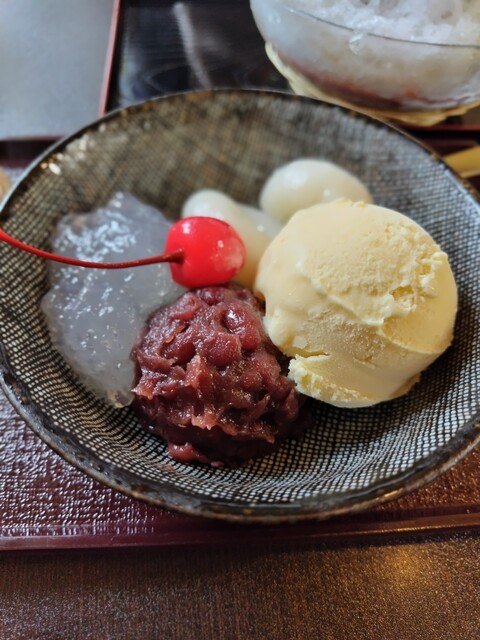 ぜんざい、わらびもち、抹茶ぜんざい、夏季には抹茶蜜を使用したカキ氷も大人気です。店内には、火鉢を囲んだ席があり特産品の朝宮茶とともに絶品和スイーツをご賞味ください。