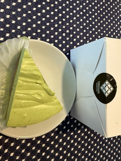 森のカフェの帰り道にあります。食後のデザートに寄りました。チーズケーキが人気のお店です。種類も10種類以上ありましたが、その中でも、ピスタチオをチョイスしました。