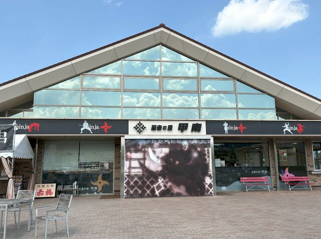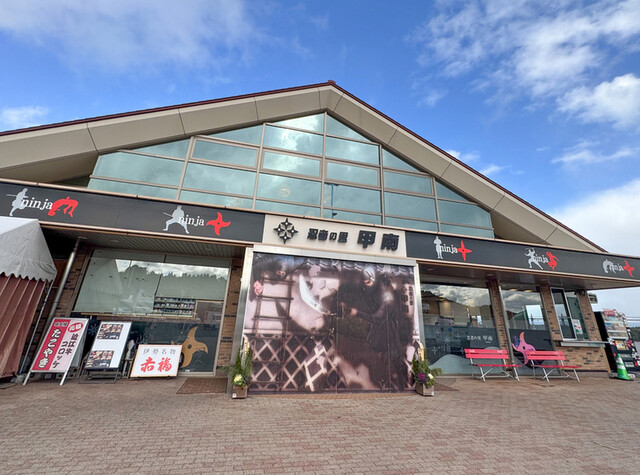 新名神道上り線に在るパーキングエリア 甲賀忍者の里で在る甲賀市甲南に在るので、忍者をテーマにしたPAになっていて 建物の外装、内装に忍者姿や手裏剣等の意匠が施されています フードコ... 詳細を見る