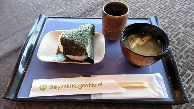 おにぎりの中に具が無くて塩にぎりのシンプルな朝ごはん