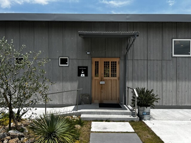 大小様々な信楽焼が販売されている「たぬき村」の道を挟んだ向かい側にプレハブのようなグレーの平屋があります。これがカフェ「aoikuma」です。