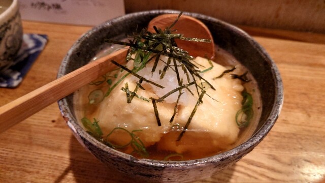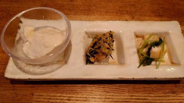 お通しは豆腐、おからと水菜...