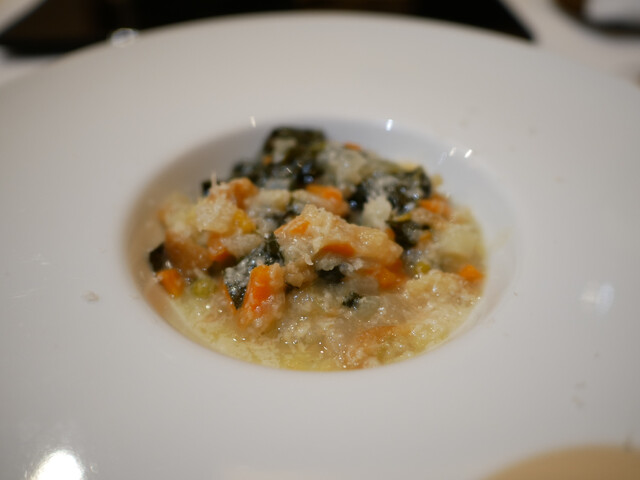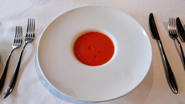 スープ(軽い一皿)・前菜・パスタ・メイン料理・ドルチェを選び終わり、水を飲んでし...