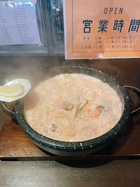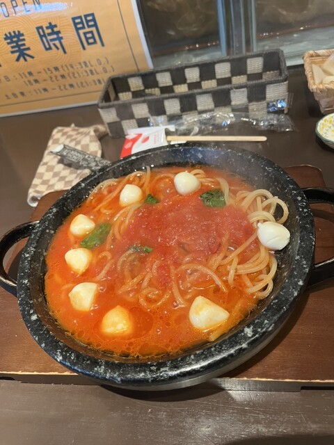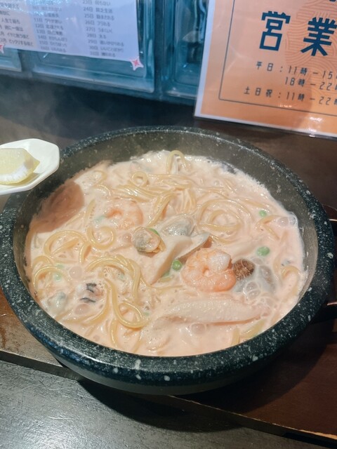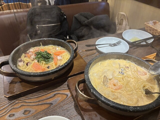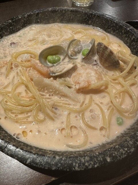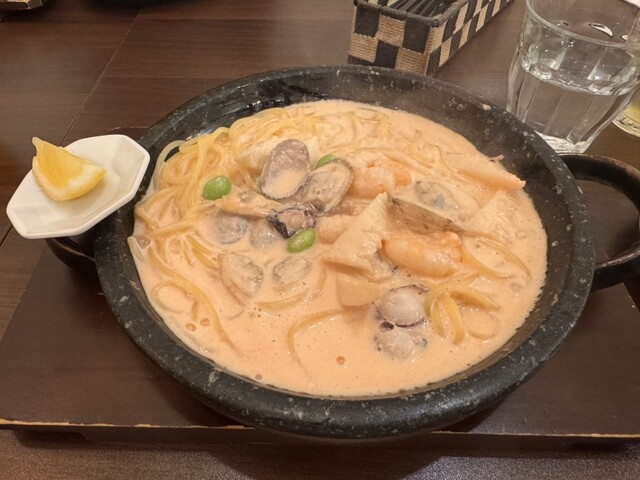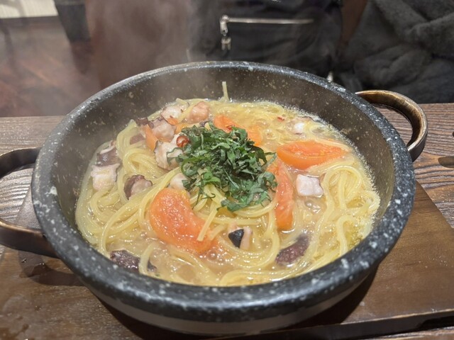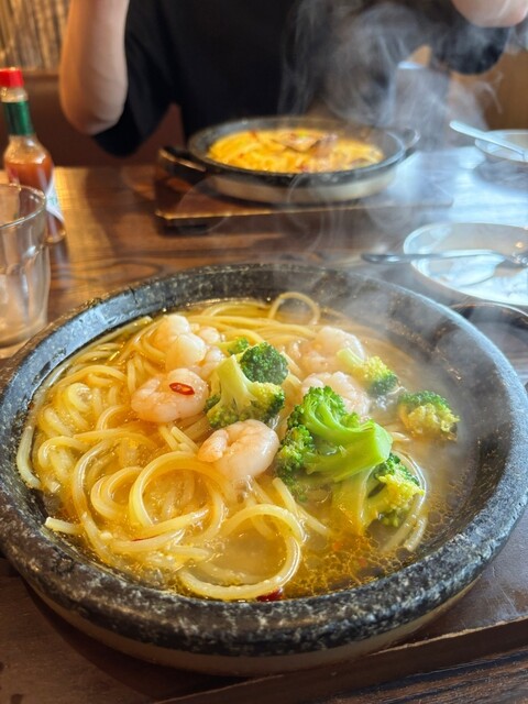 石焼きパスタ、3種類頼みましたが、どれも美味しく、明太子レモンクリームはレモンでサッパリしてとても美味しかったです。