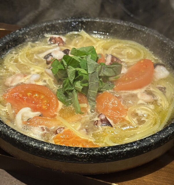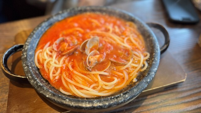 気軽に立ち寄れるカジュアルなパスタ屋。特注の石鍋でグツグツ煮込む“石焼生パスタ”が当店の名物です。人気No.1の「バジルトマト」や「ペペロンチーノ」など、約35種類のパスタをご用意。ピザやアヒージョといったイタリアンメニューもあり、お酒と一緒に楽しめます◎店内はアットホームな雰囲気で、お1人様はもちろんお子様連れのファミリーも大歓迎!心温まる寛ぎの空間で、笑顔溢れるひとときをお過ごしください♪ |