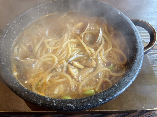 琵琶湖に行こうと思いたち、ランチの場所探してたどり着いたお店。観光客というよりは地元の人が多いため、13時過ぎても途切れなくお客さんが入ってました。もちもちの麺と、石焼あっつあつのパスタは、美味しかっ...