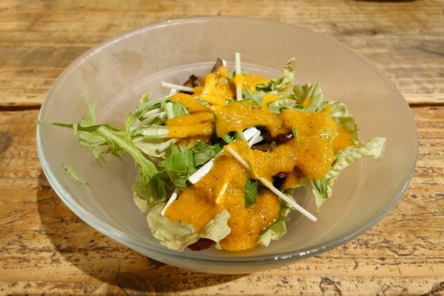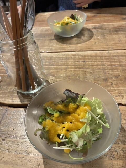 (ピッツァをオーダーすると野菜サラダとソフトドリンクがが付いています)