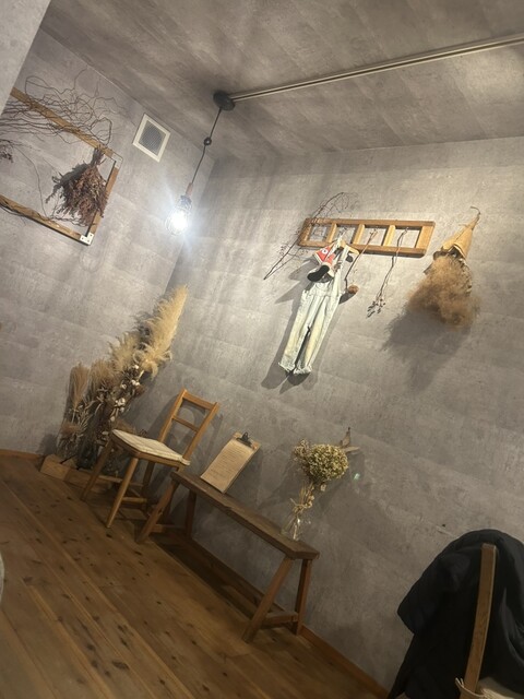 店内は、木の温もりが感じられ、ドライフラワーやオシャレな小物がいっぱい!