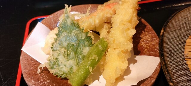 天ぷらはえび2匹、大葉、ししとう、舞茸。