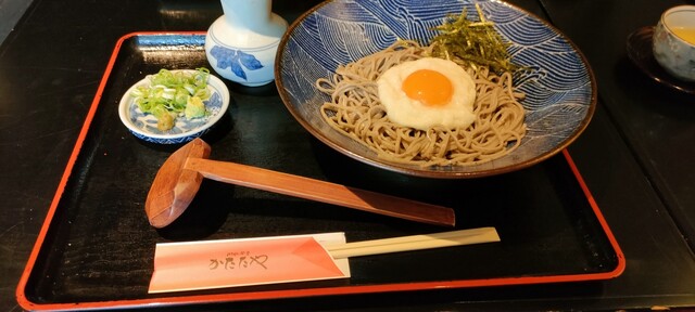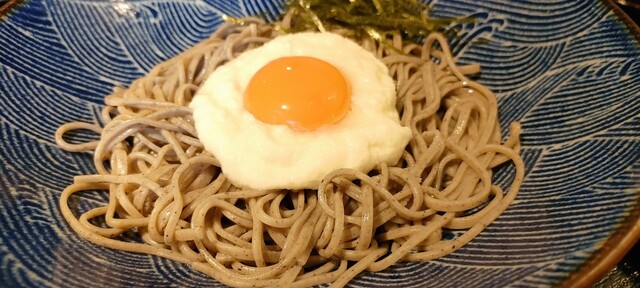 とろろの真ん中に卵黄、ネギ、海苔が乗ったそば。