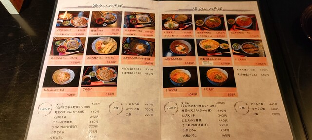 メニューは冷たい蕎麦と温かい蕎麦で20種類ほど。