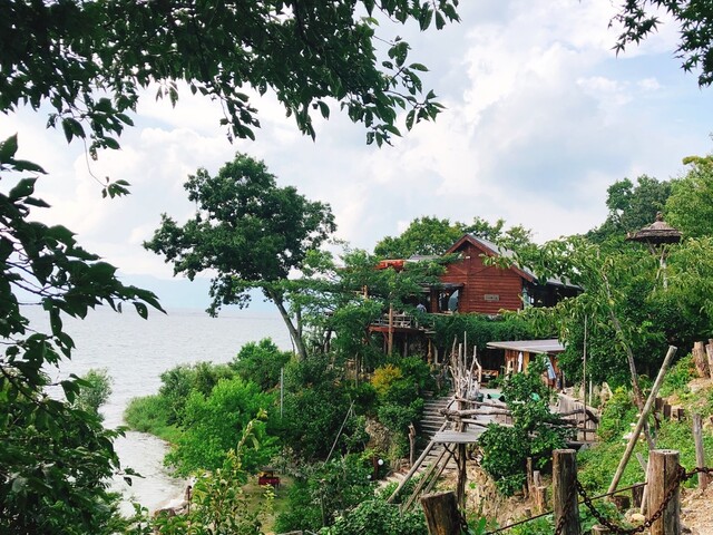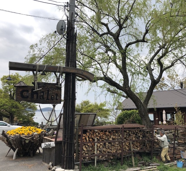 湖岸ぎりぎりの高い所にあるログハウス風の建物が【シャーレ水ヶ浜】。昭和56年創業のお店は、琵琶湖をドライブする人たちにとってなじみの湖畔のカフェです。木をふんだんに使われた店内は、窓から景色が一望でき開放感と温かさ漂う心地の良い空間。おすすめは天気のいい日のテラス席です。自然のBGMと目の前の絶景は、何時間いても飽きない素敵な場所。季節によって表情を変える自然のうつろいに、何度足を運んでもひ...