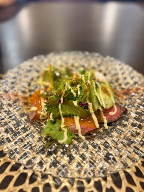 前菜のローストビーフとカルパ...