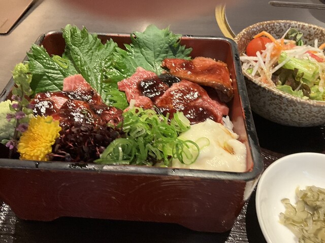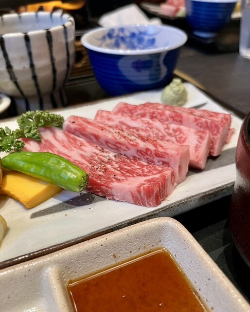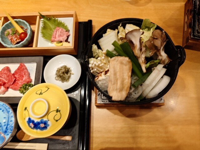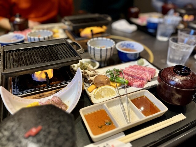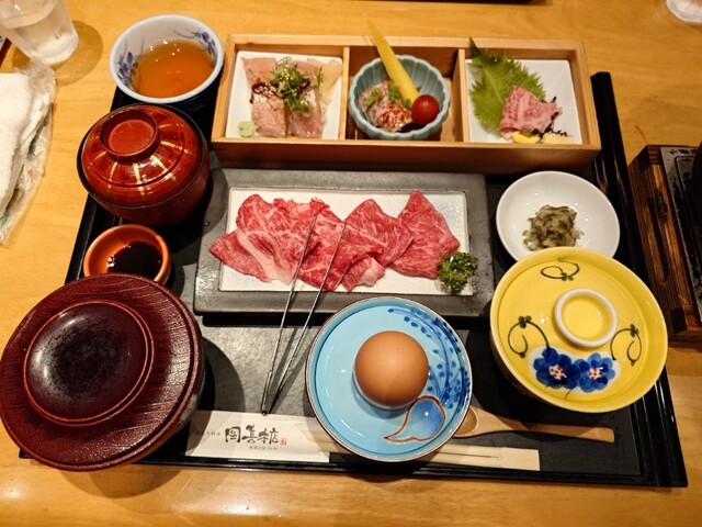 滋賀から帰る前にどこかで夕飯を、とこちらへ。 『近江牛すき焼き御膳』 お肉は柔らかく、肉のくさみがなく、旨みがあり赤身のようでした。すき焼き鍋の具が多く、大きなお麩は、汁を含ませると美味しかったです。 『近江牛焼肉 滋味御膳~ZIMI~』 厳選3種 お肉を焼くと甘みが増し、とろける... 詳細を見る