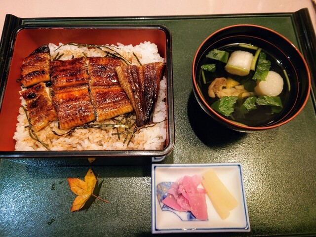 今回 鰻重シングル(2530円) 永源寺赤こんにゃく刺身(550円) オーダー