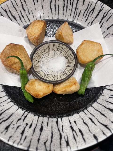 友達とお邪魔しました。八日市で流行ってる店なので、一度来たくてお邪魔しました。ネットで予約しましたが、予約席でいっぱいですね。カウンターでいただきます。色んなメニューがありますが、コスパが良くて嬉しいですね。流石にこれほど流行っているのがわかります。しかし大将が1人で料理されているので、かなり待たされました。それもアリで来られたら満足が得られる店と思いました。ただ完全禁煙ではないのは、、、ご馳走さ...