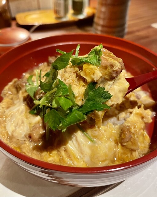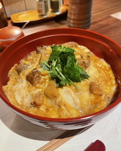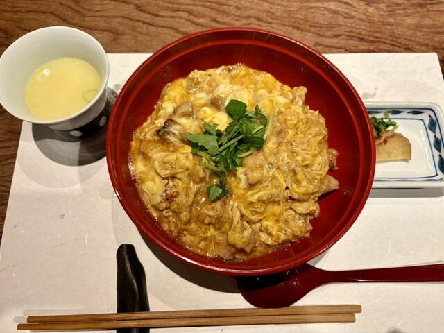 比内地鶏の親子丼 ¥1760。やっぱり親子丼は鶏の質で決まるなぁ、としみじみ思う。比内地鶏は日本三大地鶏のひとつで、秋田の広大な環境でじっくり育てられるから、肉の締まりと旨みが段違い。なるほど、鶏肉自...