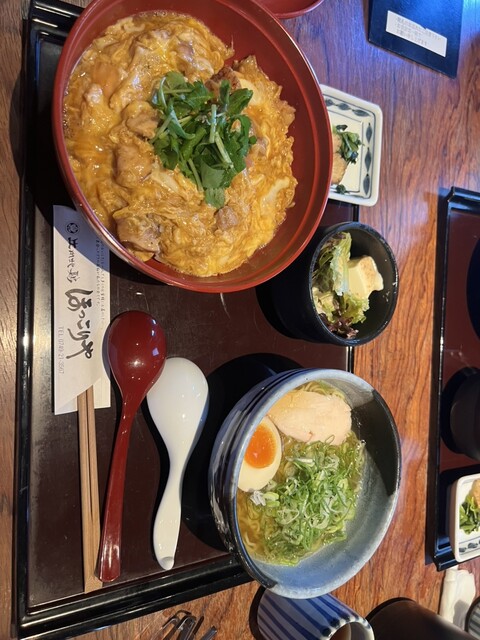 ランチタイムに訪問しました。店舗隣の駐車場は開店前には満車でした。停められてラッキーでした。予約していたので、待ち列をスキップして入店できました。ランチはメインは親子丼かラーメンです。親子丼ふわふわで...