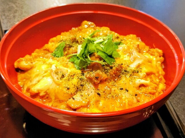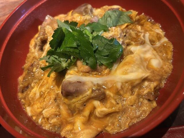 ふわふわ卵の中に、旨みを抱いた比内地鶏が潜む。ひと口目で、弾力とコクが舌を包み、