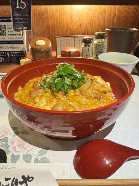 炭火で軽く炙った比内地鶏の香ばしさがふわり。甘めの返しととろり卵が寄り添って口当たりも滑らか。
