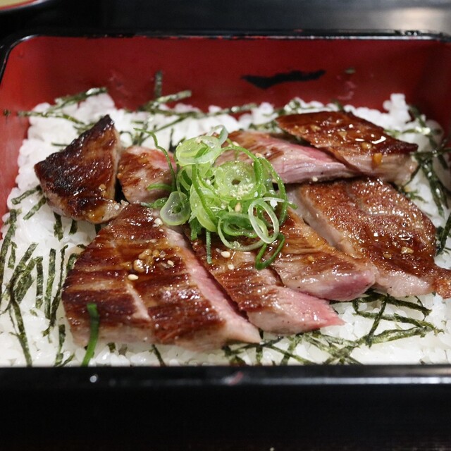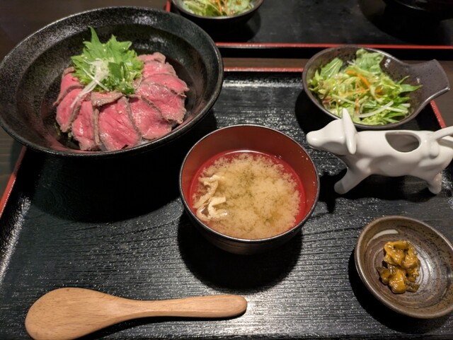 彦根城を観光して、昼ごはんで近江牛を食べたくて入りました。私は近江牛ローストビーフ丼御膳1,999円、相方は近江牛たたき丼御膳2,198円を注文しました。どちらも肉が甘くて美味しかったものの、もっと肉...