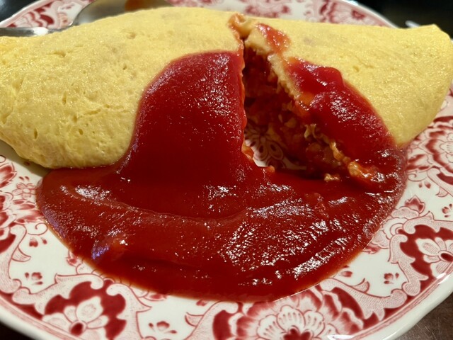 オムライス1,300円、普通はデミグラスソースがかかってるんですがケチャ...
