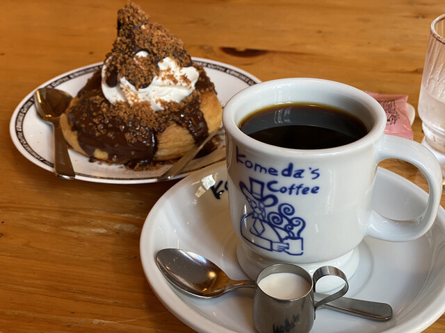 滋賀県は彦根のベルロードという飲食店等が並ぶ道を横に入ったところにあるコメダ。デザートが100円お得になる、選べるデザートセットでホットコーヒーとミニシロノワールを注文(シロノワールは大きすぎて一人では無理)。安定のおいしさ。
