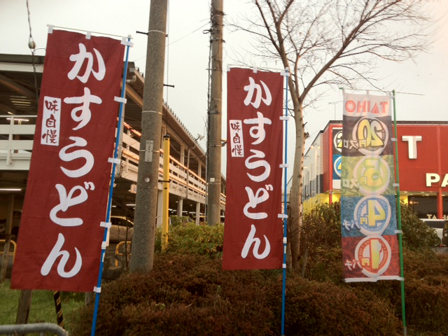 仕事でお昼が遅くなり、帰社途中にパチンコ店の のぼり の中に かすうどん の文字が ここは大阪か? と興味を惹かれ店内へ