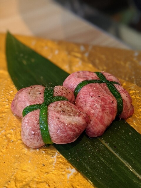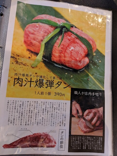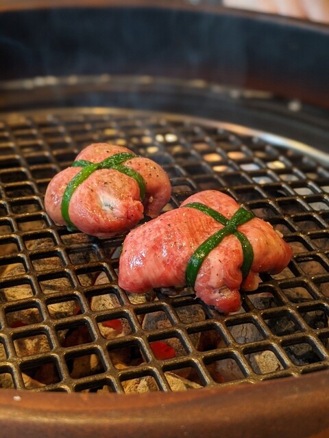 東京のうし松さんが流行らしたタンを結んでるやつ。ここでは肉汁爆弾タン