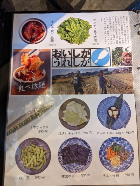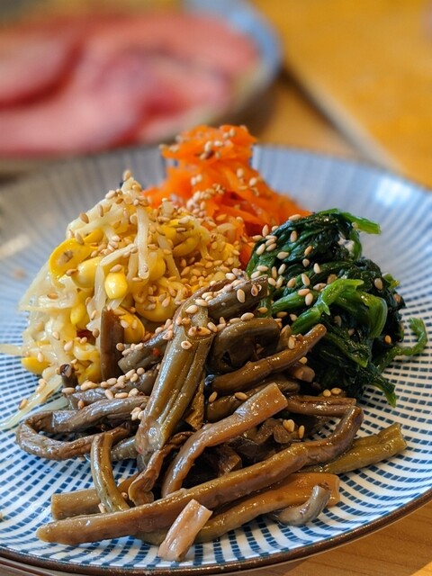 1本きゅうり、ナムル、チョレギサラダは普通に美味い。