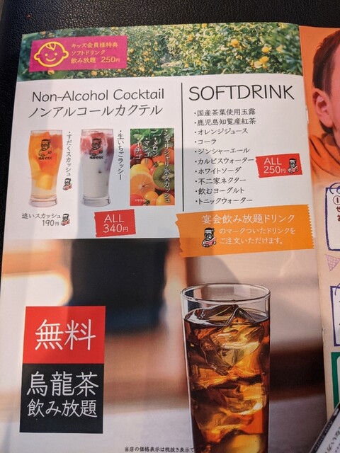 そして烏龍茶は無料。