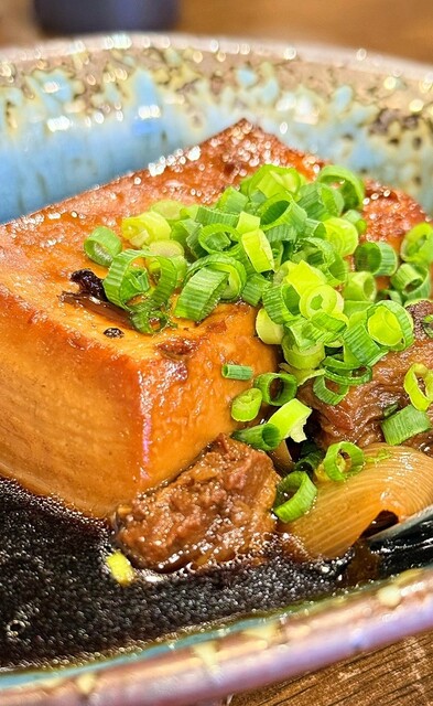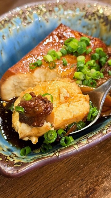 ビールで喉の渇きを潤していると、肉どうふの登場。