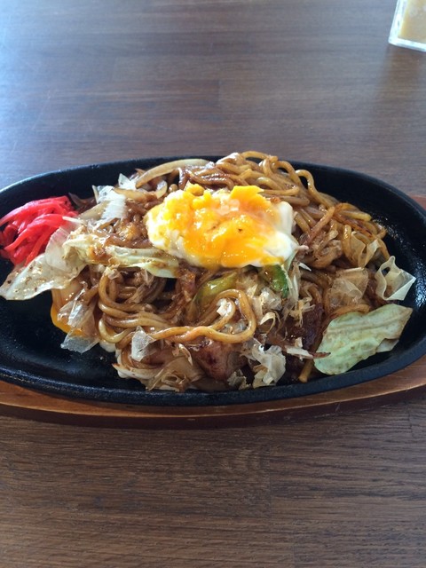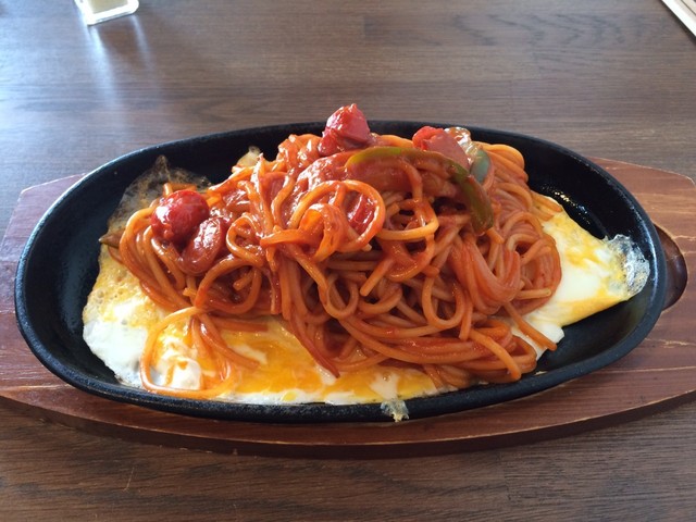 鉄板ナポリタンは、卵にチーズも入れてもらったので、麺を卵に絡め...