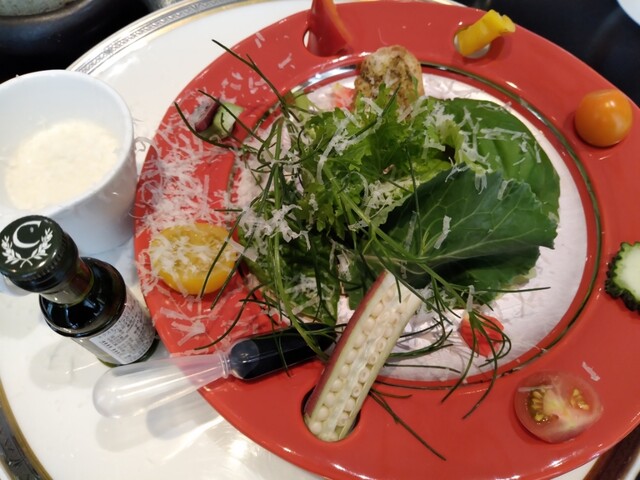 ・前菜は有機野菜のバーニャカ...