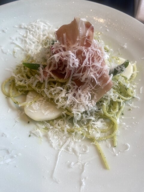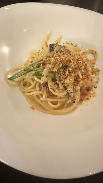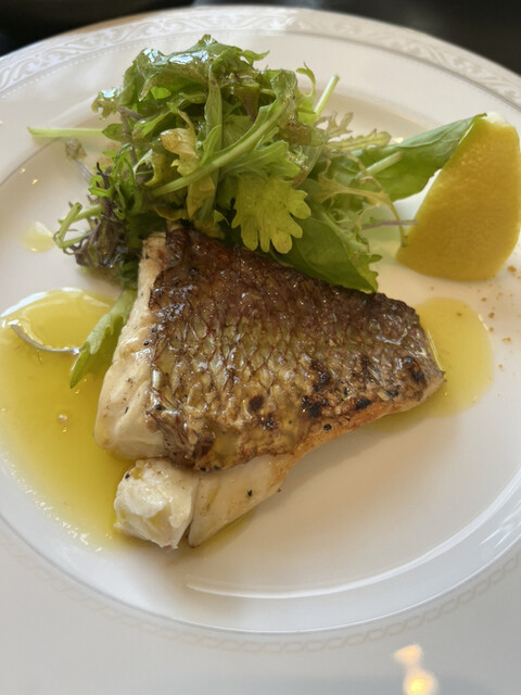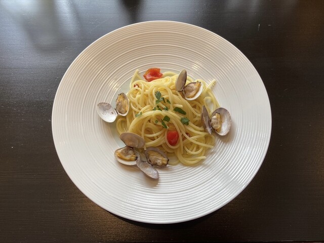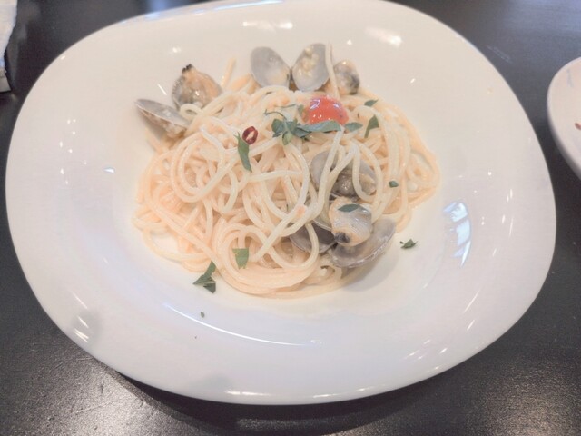 取引先から頂いた商品券を使うため、以前訪問してよかったお店を予約しました。パスタとメインが選択でき、パスタはボンゴレビアンコ・メインは(以前助手席様が美味しいといった)真鯛の炭火焼にしました。