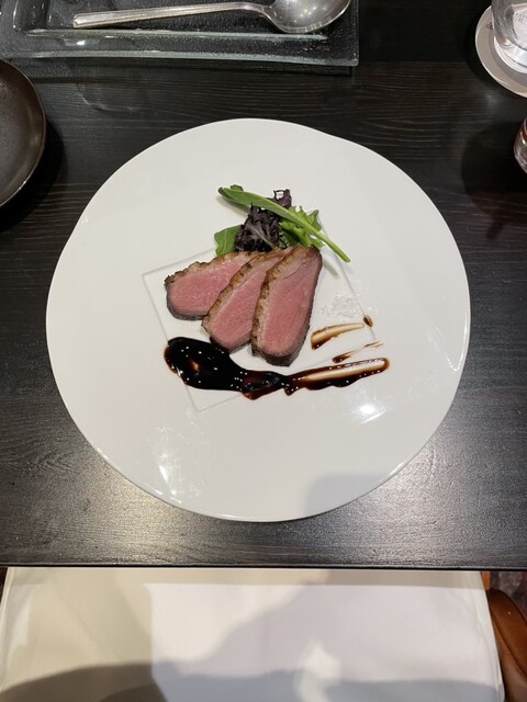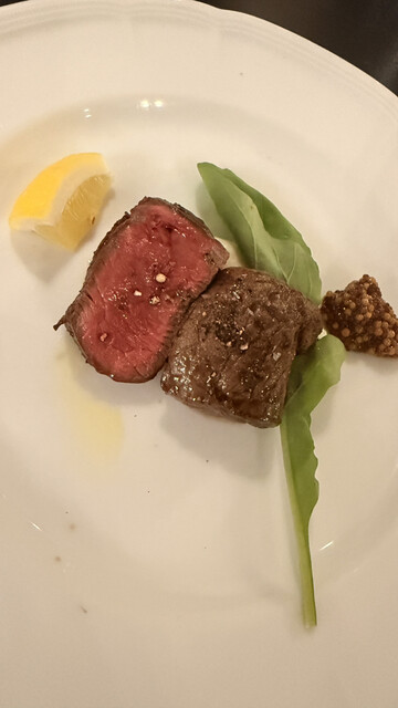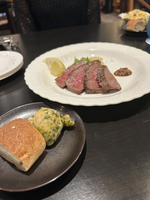 琵琶湖近くでディナーということでこちらを予約。「牛フィレ肉の炭火焼が堪能できる、シェフのスペシャルコース」をリクエスト。前菜から4種チーズのパスタ、魚介のトマトスープに青のりの揚げパンが美味しくておか...