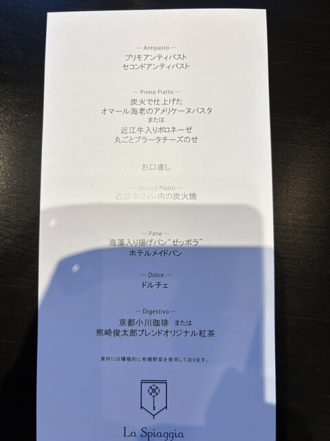 この度は、北ビワコホテルグラツィエならびにリストランテ「ラ・スピアッジャ」にお越しいただき誠にありがとうございます。