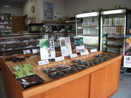 店内ではお店のひとが鰻の蒲焼を焼きながら、滋賀県特産の「鮎の甘露煮・鮒寿司・鮎の昆布巻きなど」...