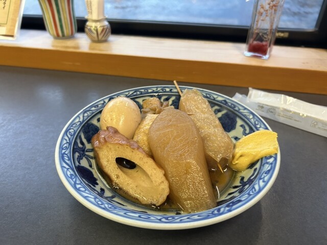 訪店18時、予約を入れてあったので、すんなりご案内。まあ平日ということもあり、一階座敷も先客0、川沿い窓側カウンターも2名×2、おでん鍋周りカウンターに常連さん1名、2階でミニ宴会... 詳細を見る